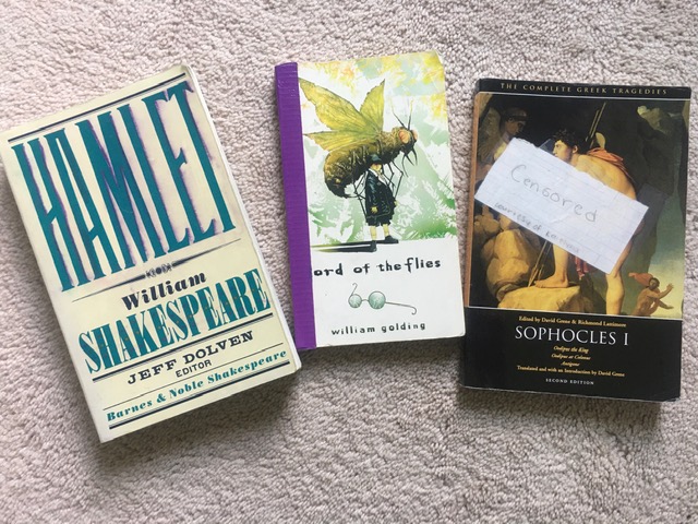 Yet when you look at my books from high school lit classes – well, hold that thought, I can’t even look at them. And I do really want to re-read some of them. I loved Hamlet and All The Pretty Horses, and I have a theory about Dr. Jekyll and Mr. Hyde that I’d love to investigate. But I can’t bear to crack them open (gently, in the case of Invisible Man and Lord of the Flies, because the binding has completely fallen apart and they’re taped together) and see all the dumb stuff I wrote when I was 15 and trying not to get a bad grade.